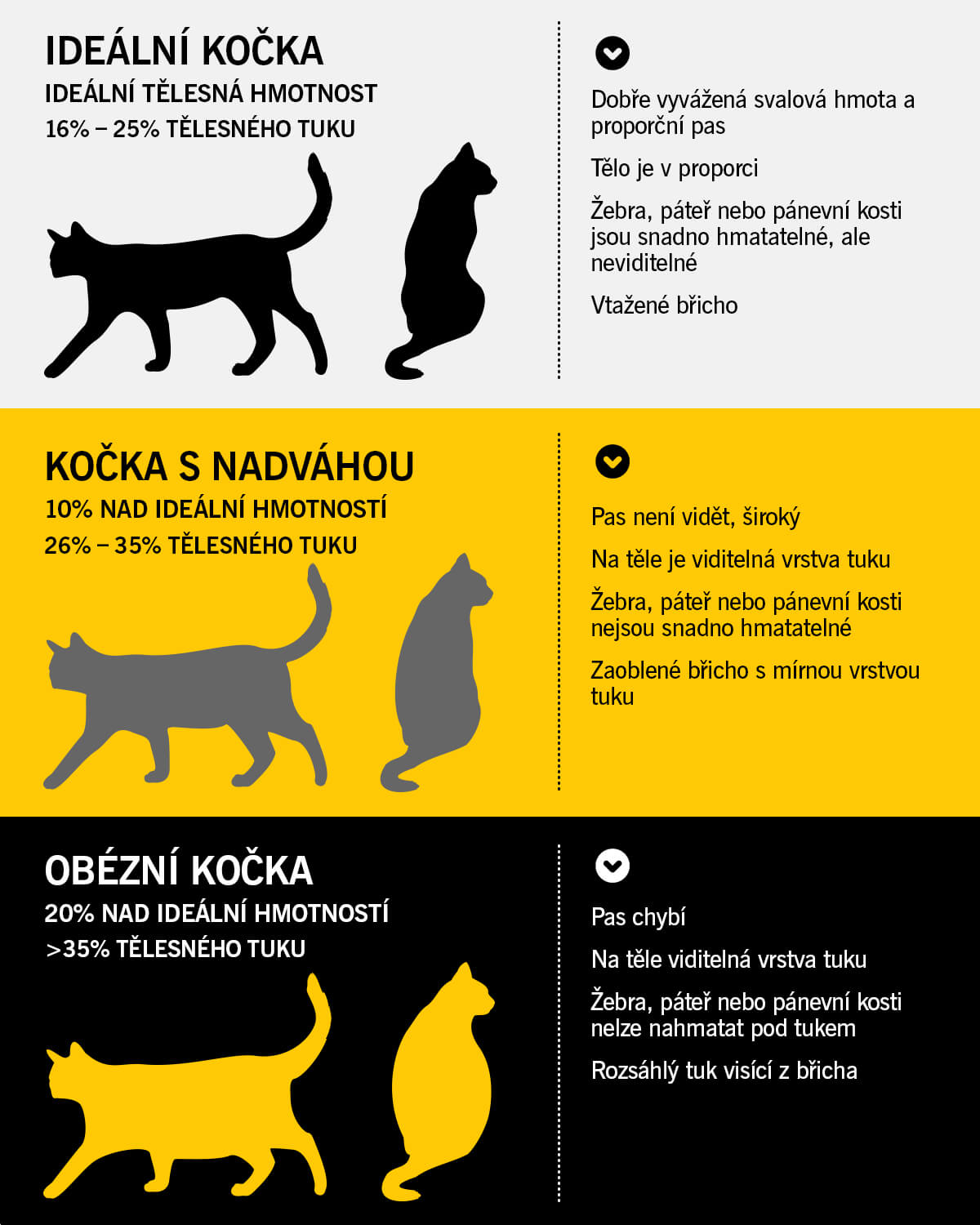 Jak tedy poznáte, že je vaše kočka obézní? Obecné pravidlo říká, že když je tělesná hmotnost kočky o 20 procent nebo více vyšší než normální, je klasifikována jako obézní.