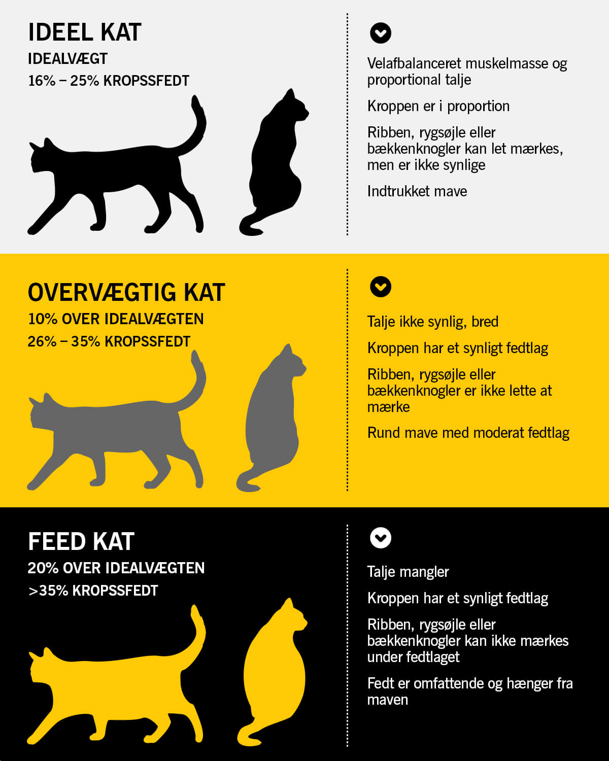 Hvordan ved du, om din kat er overvægtig? Den generelle regel er, at når din kats kropsvægt er 20 procent eller mere over den normale vægt, betragtes den som fed.
