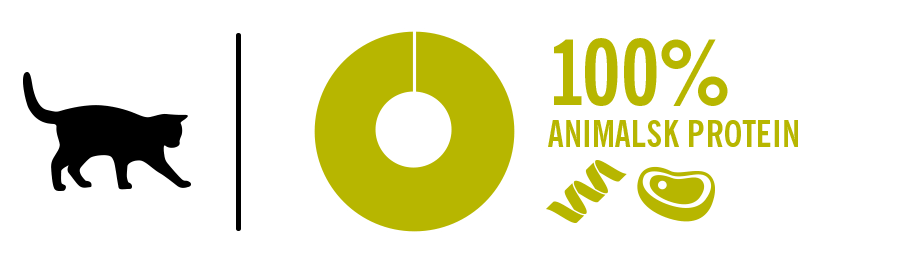 I naturen har katter bare én matkilde: andre dyr. Fordøyelsessystemet deres trengte aldri å tilpasse seg ulike typer mat. Fremdeles i dag er kroppen deres bygget for å spise kun kjøtt.